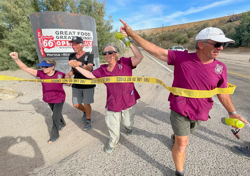 The 2nd Annual Route 66 UltraRun was a grand success, living up to your Race Director’s vision of being 140 Miles of History and A Race for Everyone. With solo runners supported by their crews of 2-4 people and – new for 2023 and definitely to be continued – Relay Teams or 4, 5, or 6 people, finish times ranged from under 27 hours to over 58 hours. So, whether you are a fast solo runner, a team player that want to participate on a speedy, or more-for-fun team; a slower runner or even a walker (with 60 hours to finish 140 miles you don’t even have to average 2.5 miles per hour). You can come out to Historic Route 66 in Arizona and join the fun! Are you an older runner? You can come out too but, beware: the 2023 3rd Place runner was 70 years old! Older doesn’t always mean back of the pack.